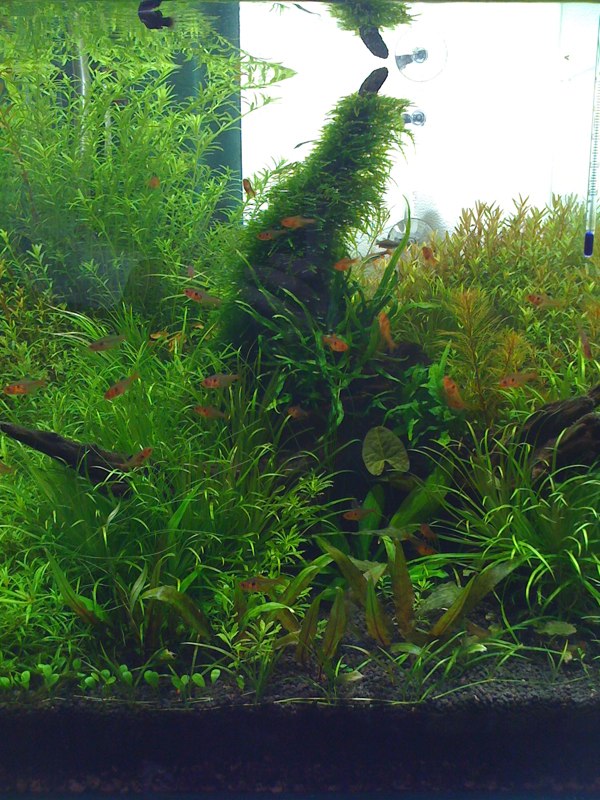 バクテリアも定着して落ち着いた状態ですが水草も2週間トリミングしないと大変なことになりますトリミング後すっきりです。前景の水草がもう少し茂ったらリニューアルします